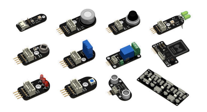 Esta práctica está pensada para realizarlo junto a un MentorBit, que es la placa controladora de los diferentes módulos que incluye la práctica de la casa domótica. A continuación se muestran los módulos que vienen incluidos con la práctica.