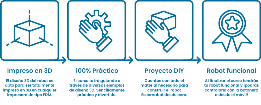 El proyecto principal del curso será la fabricación desde cero de un robot educativo denominado Escornabot, un proyecto de hardware y software libre nacido en Galicia que tiene el objetivo de acercar la robótica maker, la electrónica, la programación y la fabricación digital a profesores y alumnos de todas las edades.